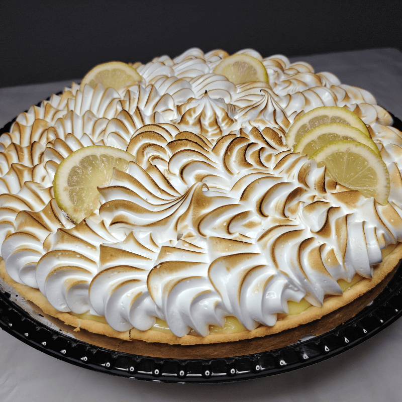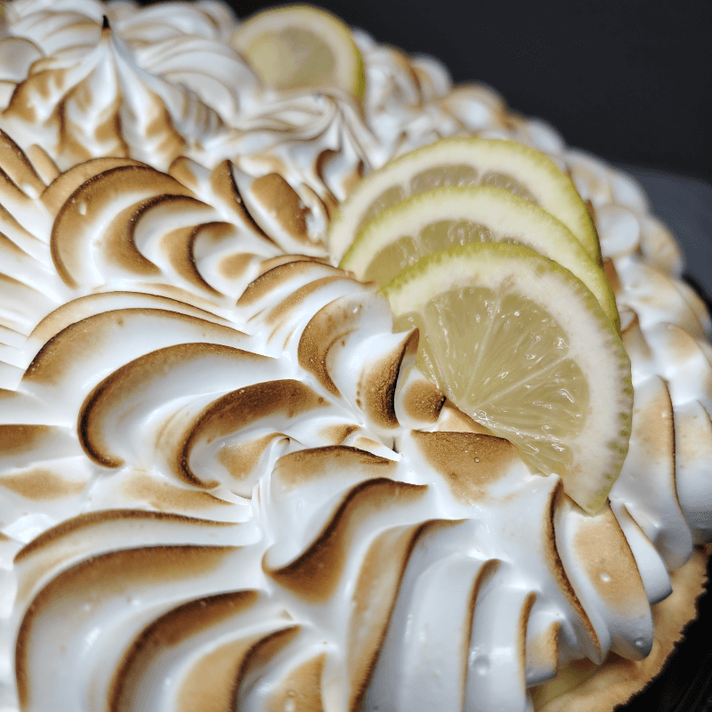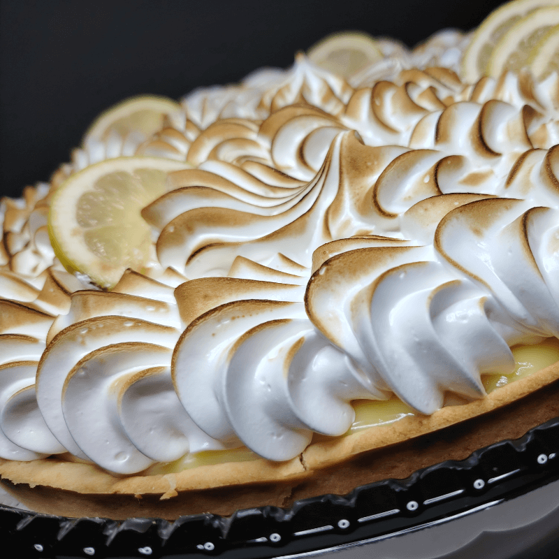 Tradicional pie de limón con base crocante, relleno suave y toques cítricos, perfecto para cualquier ocasión.