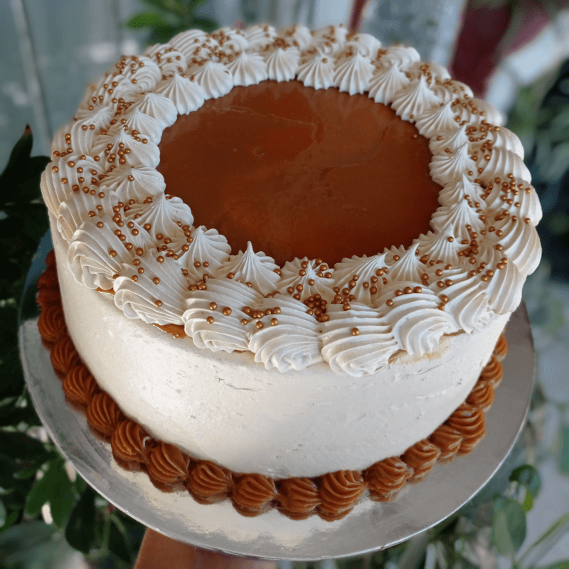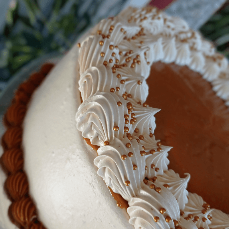 Bizcocho de vainilla o chocolate, pulpa y crema de lúcuma, manjar y nuez
